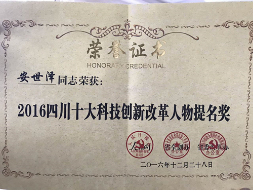 1月24日,“2016四川十大改革轉(zhuǎn)型發(fā)展案例暨十大科技創(chuàng)新改革人物”頒獎(jiǎng)晚會在綿陽召開。我院院長安世澤榮獲“2016四川十大科技創(chuàng)新改革人物”提名獎(jiǎng),并出席了當(dāng)晚的頒獎(jiǎng)典禮。