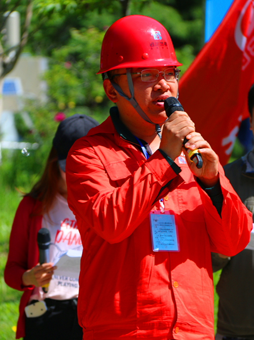 項目部現場總協調人陳新代表參加演練的施工單位發言