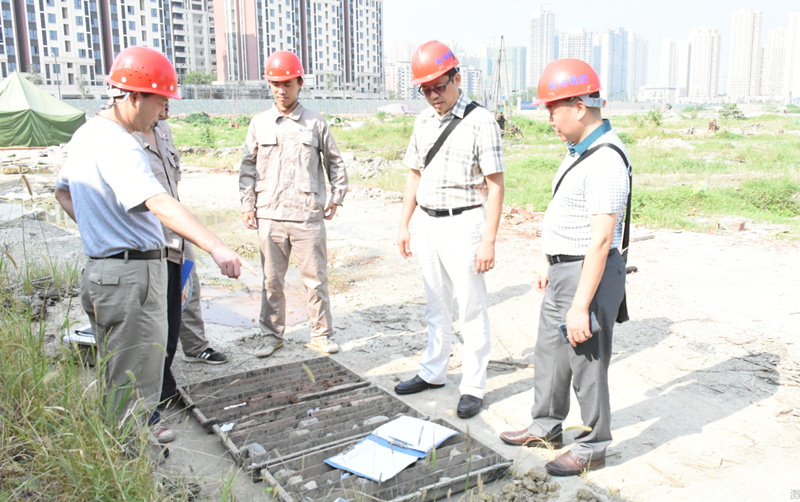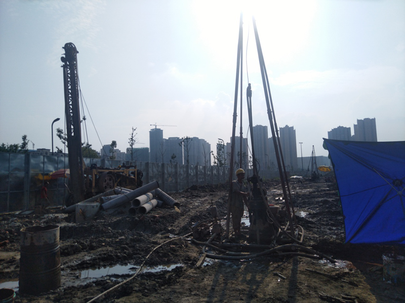 為確保“華府279 項目”巖土勘察的順利完成,及時向建設(shè)單位、設(shè)計單位、有關(guān)施工單位提供全面的、可靠的、科學的勘察成果,我院水文地質(zhì)工程公司先后選派五名高級工程師和其他現(xiàn)場管理、地質(zhì)技術(shù)人員組成項目組駐扎現(xiàn)場,克服工期緊、高溫暴雨以及鉆機荒等各種因素的影響,加班加點趕進度;院長安世澤、院黨委書記謝大軍以及水文地質(zhì)工程公司領(lǐng)導、技術(shù)顧問、生產(chǎn)管理部門人員等先后前往項目一線慰問作業(yè)人員并進行指導,全力協(xié)助項目部解決施工過程中遇到的具體問題。