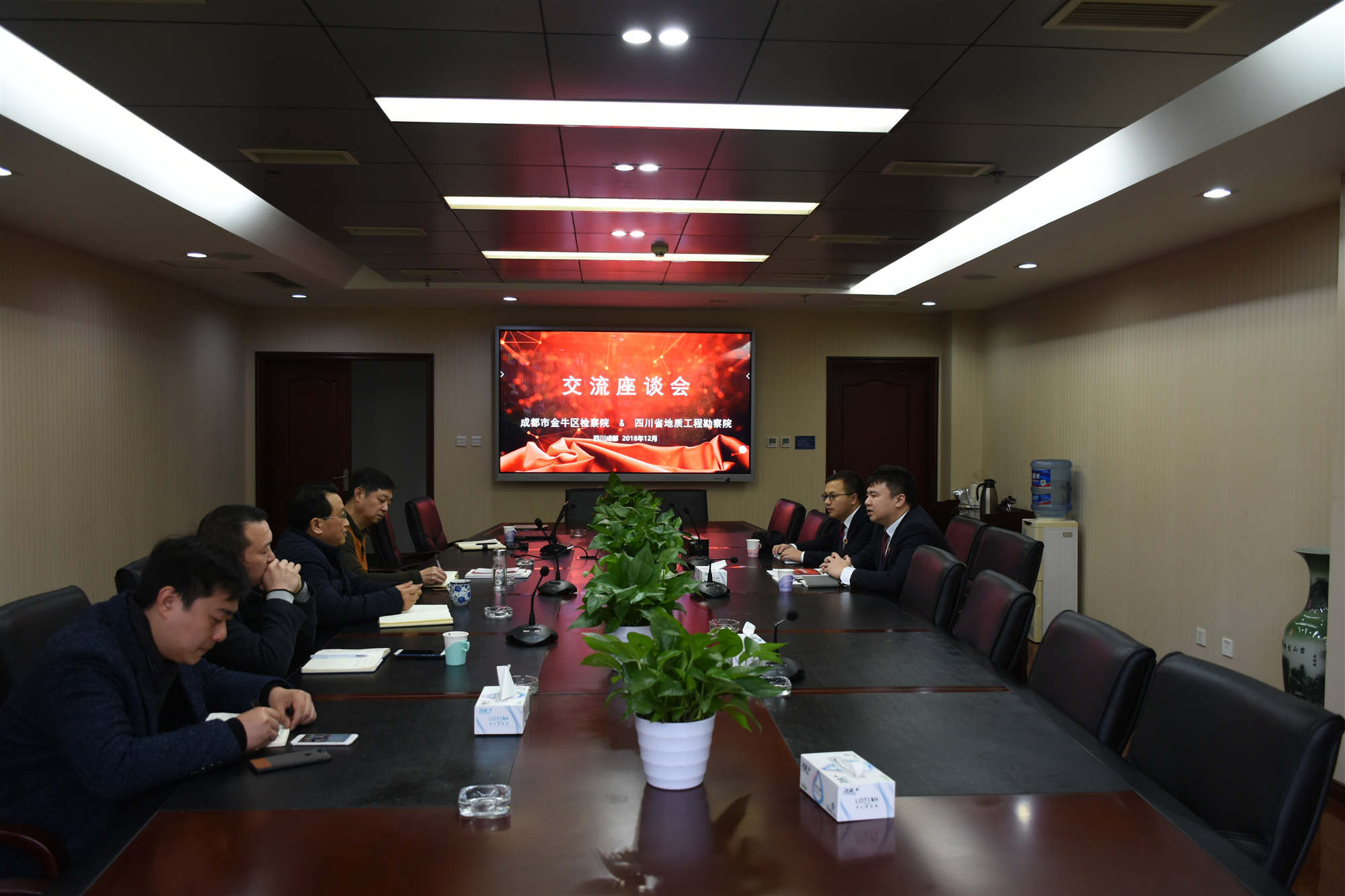 12月7日,成都市金牛區(qū)檢察院職務(wù)犯罪偵查與預(yù)防綜合科科長任立君一行3人到我院交流座談,為我院提供法律咨詢服務(wù),并征求對(duì)金牛檢察工作的意見建議。院黨委副書記、紀(jì)委書記兼工會(huì)主席廖華成、紀(jì)檢監(jiān)察室、地質(zhì)礦產(chǎn)公司、市場部、綜合管理部等部門負(fù)責(zé)人參加座談會(huì)。