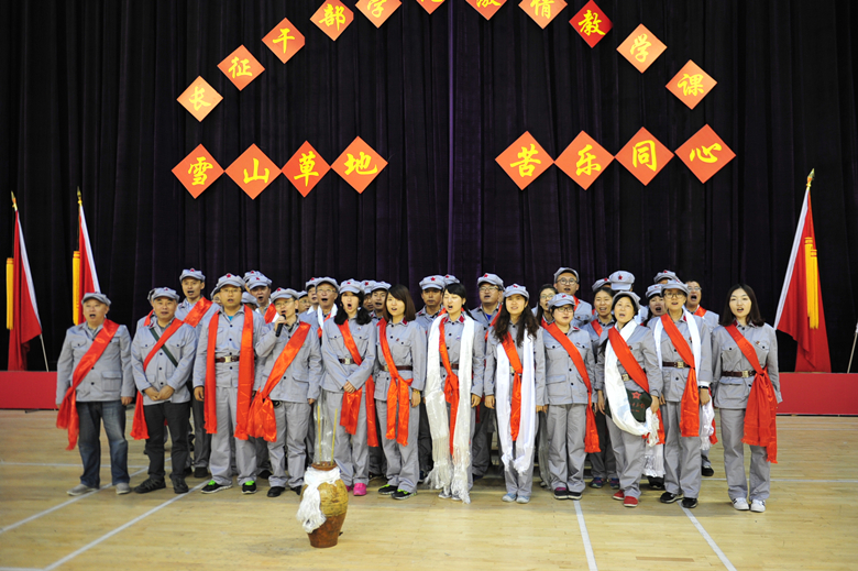 培訓期間,隊伍打紅旗,學員穿紅軍服、戴紅軍帽、背紅軍包、纏綁腿、系皮帶、戴校徽,出行列隊整齊有序,成為一支紅色勁旅。學員們通過“吃紅軍飯、唱紅軍歌、走紅軍路”的培訓形式,經過長征歷史理論教學、參觀馬爾康紅軍長征紀念館現場教學、過草地穿越日干喬大沼澤體驗教學,學習紅軍隊伍的堅強斗志,體驗紅軍長征中的艱難困苦。